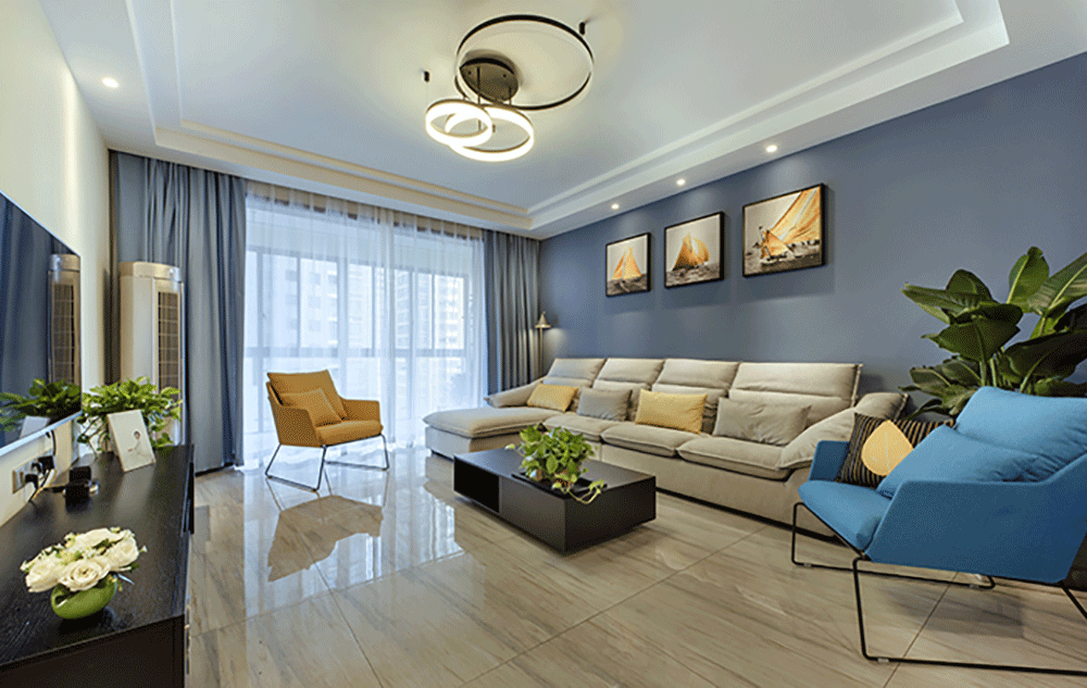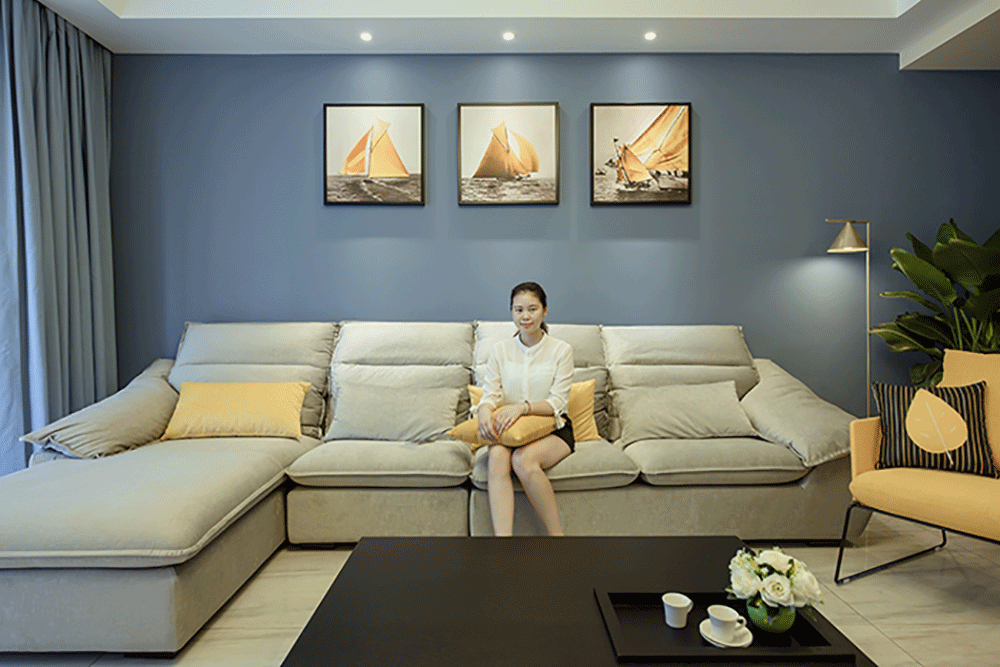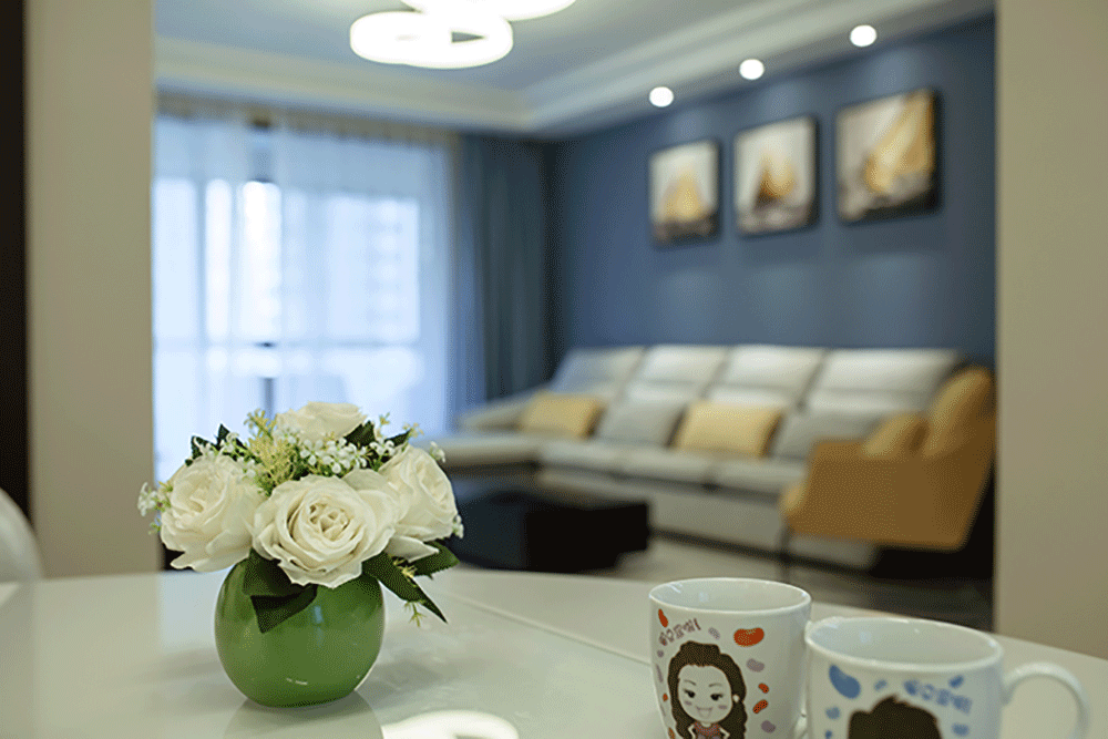 浪漫婚房,清凈的湖水藍撞色溫暖的檸檬黃